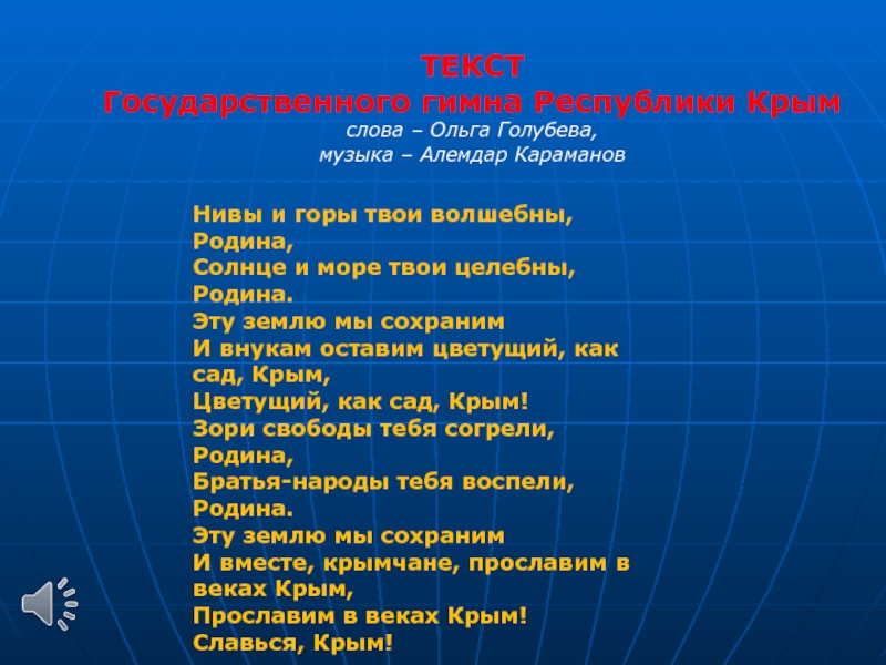 И вместе, крымчане, прославим в веках Крым,