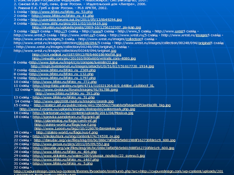 2. Синова И.В. Герб, гимн, флаг России. – Издательский дом «Литера», 2006.