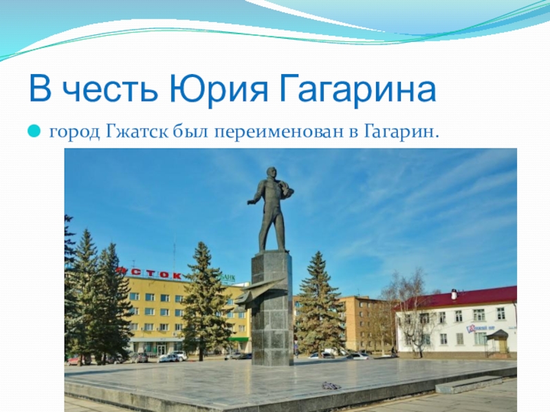 В честь Юрия Гагаринагород Гжатск был переименован в Гагарин.