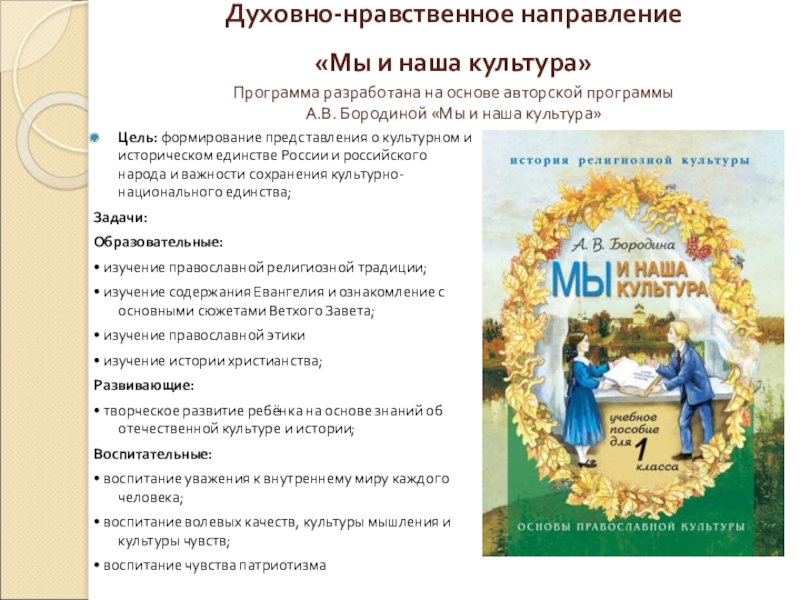 • творческое развитие ребёнка на основе знаний об отечественной культуре и истории;