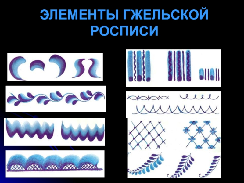Слайд 6ЭЛЕМЕНТЫ ГЖЕЛЬСКОЙ РОСПИСИ