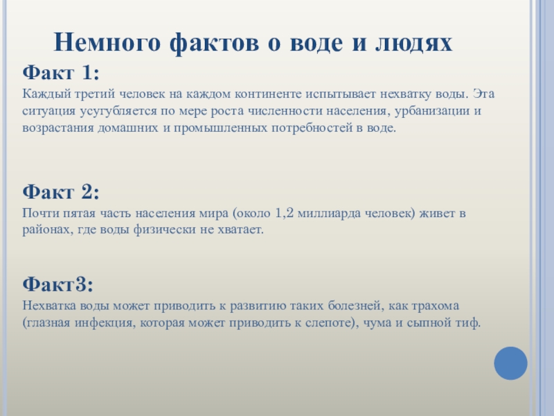 Почти пятая часть населения мира (около 1,2 миллиарда человек) живет в районах, где воды физически не хватает.