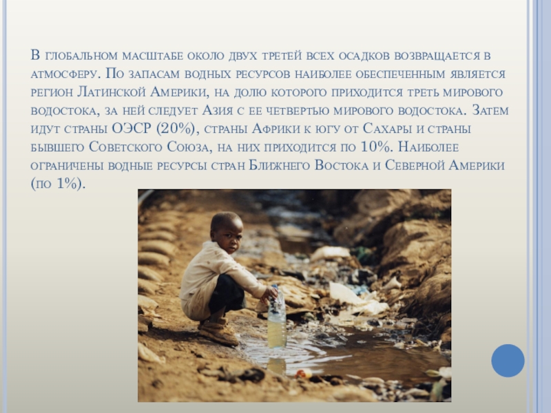 Слайд 8В глобальном масштабе около двух третей всех осадков возвращается в атмосферу.