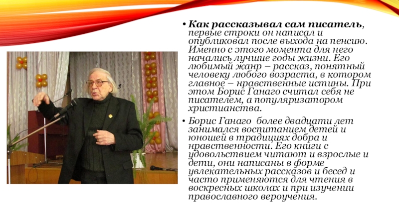 Презентация, доклад о православном писателе. Борис Ганаго.