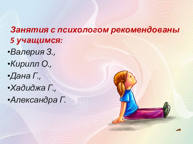 Слайд 5Занятия с психологом рекомендованы 5 учащимся: