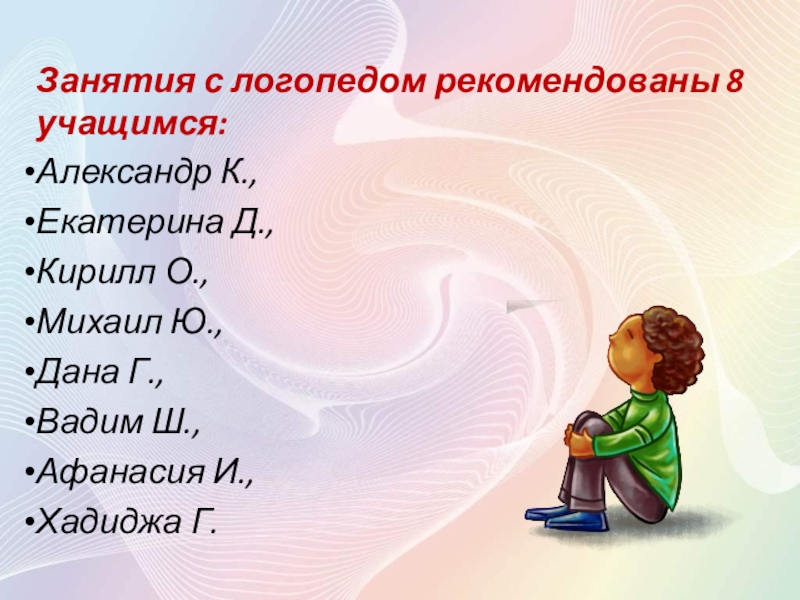 Слайд 4Занятия с логопедом рекомендованы 8 учащимся:
