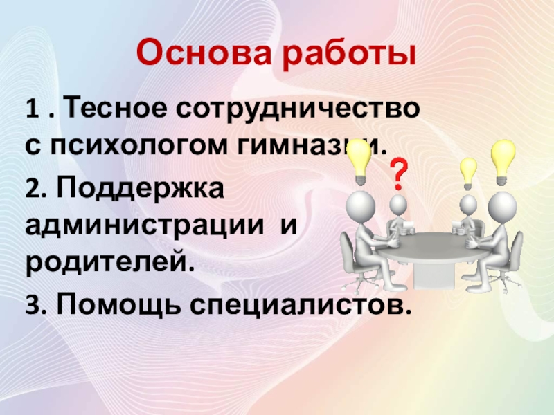 1 . Тесное сотрудничество с психологом гимназии.