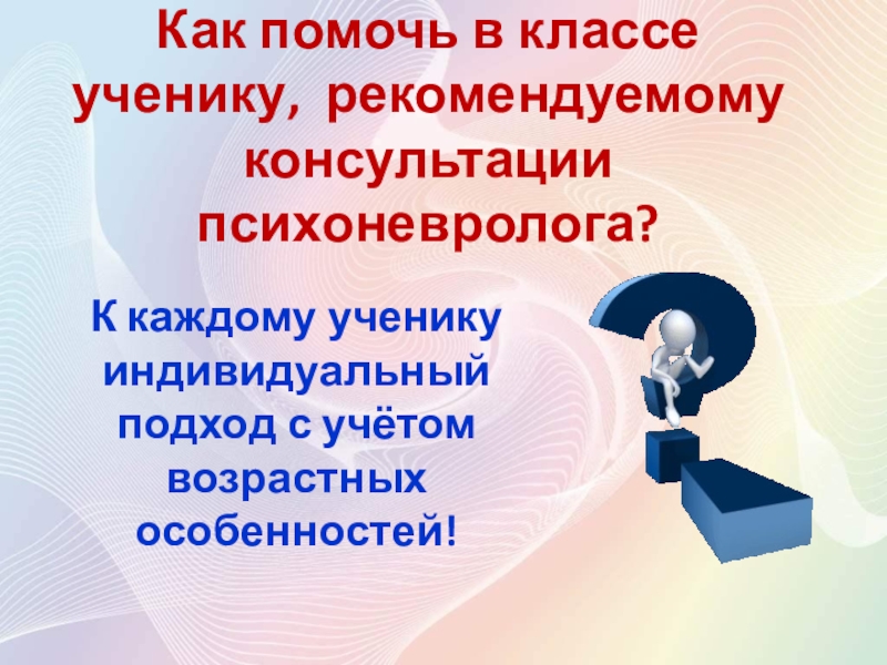 Слайд 10Как помочь в классе ученику, рекомендуемому консультации психоневролога?