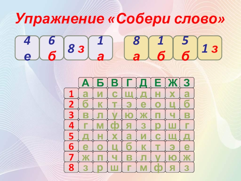 Слайд 98Упражнение «Собери слово»
