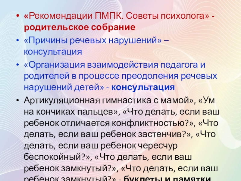 Слайд 9«Рекомендации ПМПК. Советы психолога» - родительское собрание