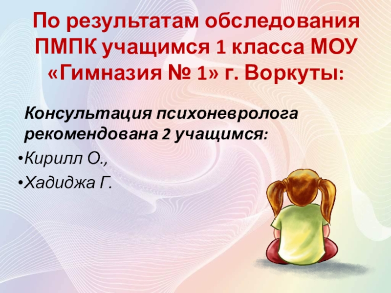 Слайд 3По результатам обследования ПМПК учащимся 1 класса МОУ «Гимназия № 1»