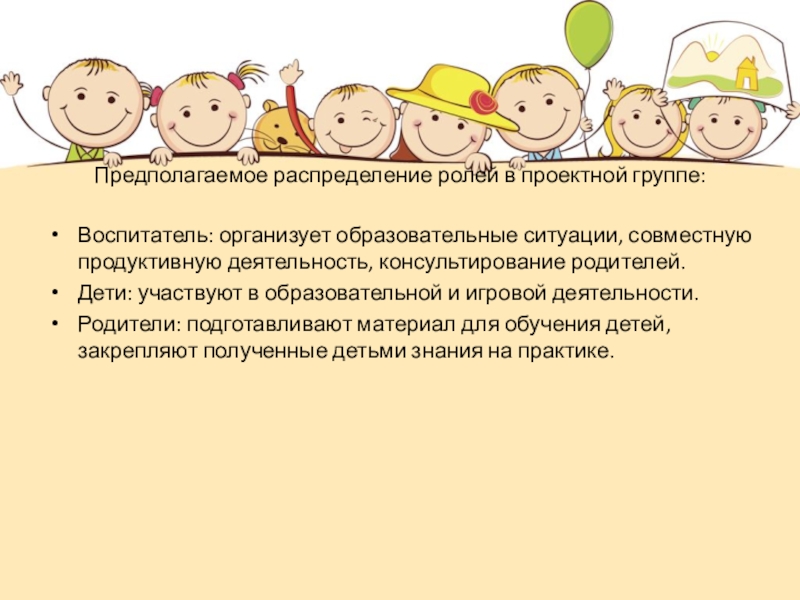 Слайд 6Предполагаемое распределение ролей в проектной группе: