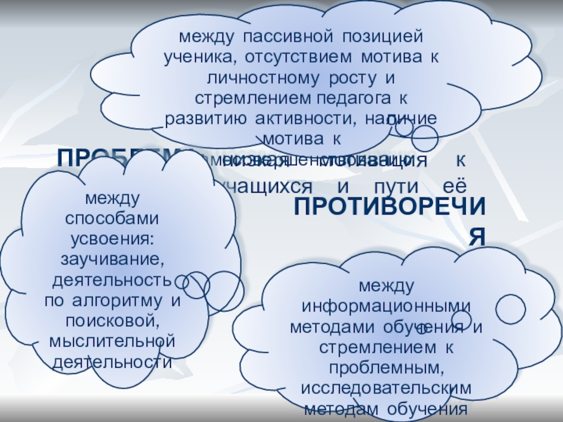 между информационными методами обучения и стремлением к проблемным, исследовательским методам обучения