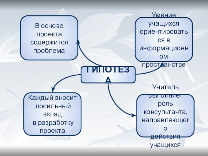 Включение учащихся в проектную деятельность учит их размышлять, прогнозировать, собирать информацию, анализировать факты, делать выводы. Проектная деятельность одна из составляющих развивающего, личностно– ориентированного обучения.