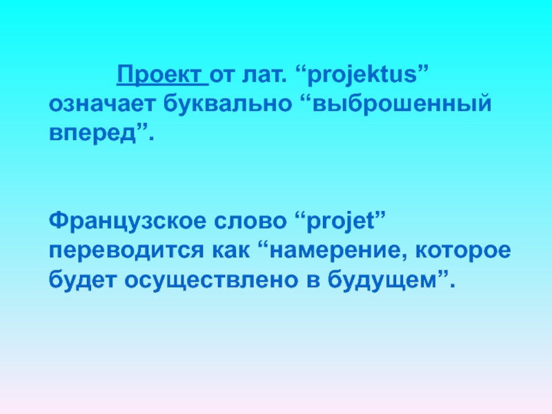 Французское слово “projet” переводится как “намерение, которое будет осуществлено в будущем”.