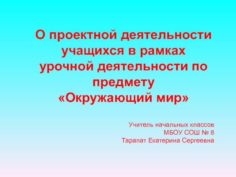 О проектной деятельности учащихся в рамках урочной деятельности по предмету