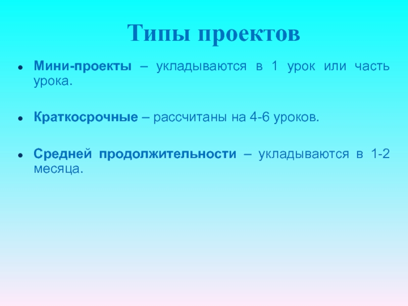 Мини-проекты – укладываются в 1 урок или часть урока.