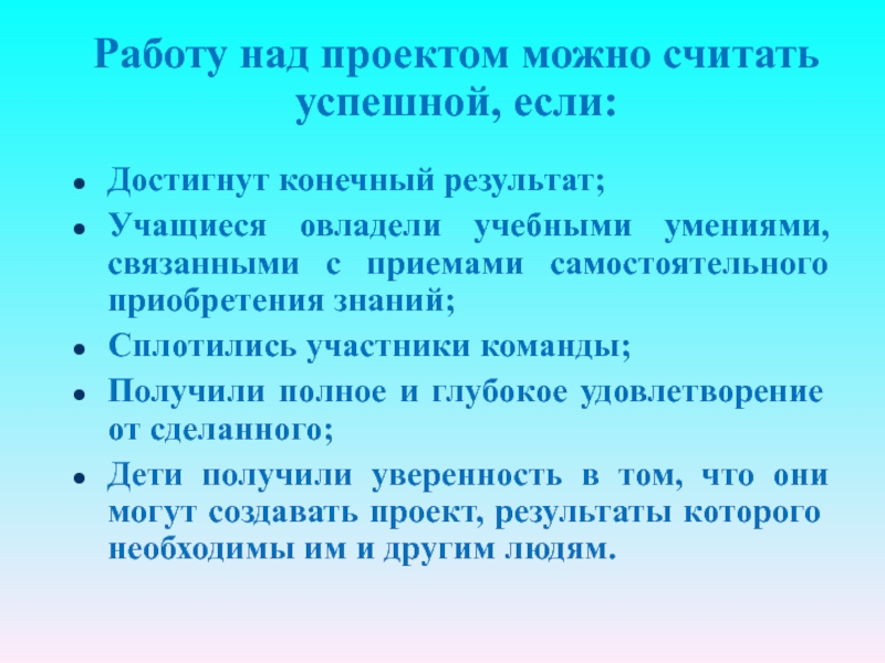 Дети получили уверенность в том, что они могут создавать проект, результаты которого необходимы им и другим людям.