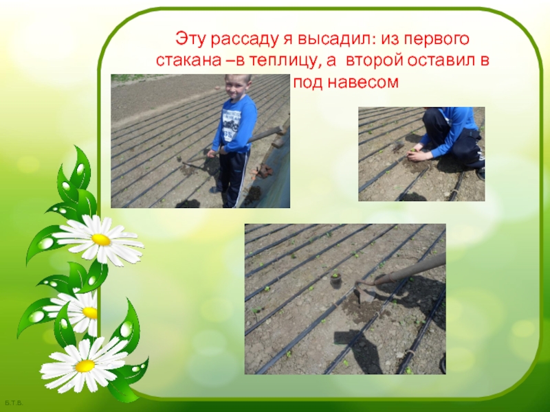 Слайд 10Эту рассаду я высадил: из первого стакана –в теплицу, а второй