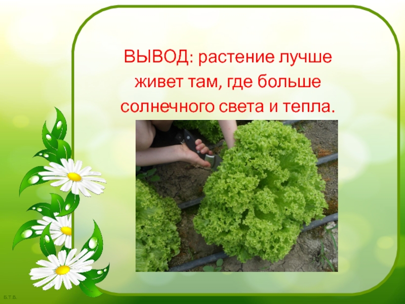 Слайд 12ВЫВОД: растение лучше живет там, где больше солнечного света и тепла.