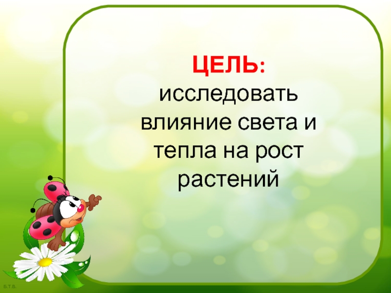 Слайд 3ЦЕЛЬ: исследовать влияние света и тепла на рост растений