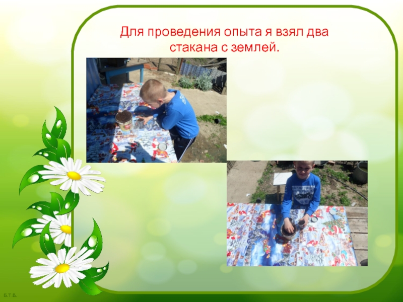 Слайд 5Для проведения опыта я взял два стакана с землей.