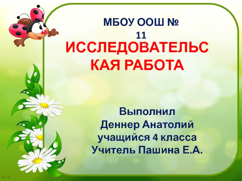 ВыполнилДеннер Анатолийучащийся 4 классаУчитель Пашина Е.А. МБОУ ООШ № 11ИССЛЕДОВАТЕЛЬСКАЯ РАБОТА