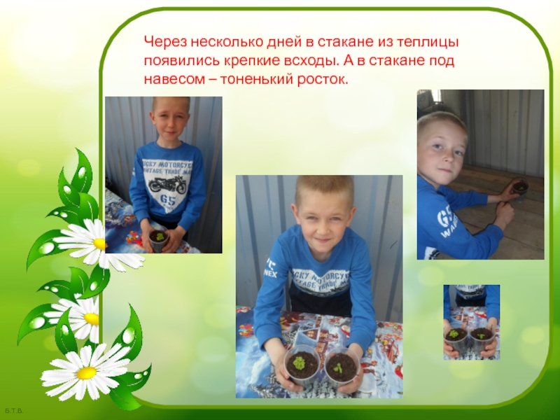 Слайд 8Через несколько дней в стакане из теплицы появились крепкие всходы. А