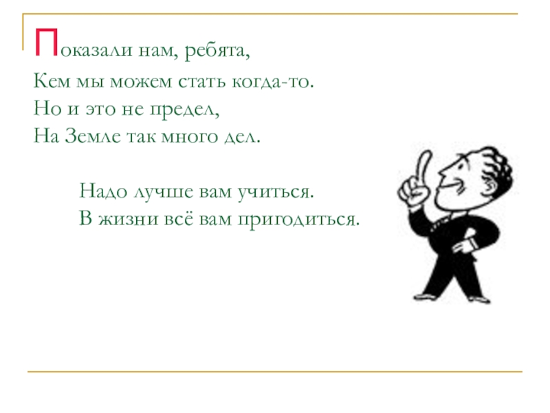 Это сайт презентаций, где можно хранить и обмениваться своими презентациями, докладами, проектами, шаблонами в формате PowerPoint с другими пользователями. Мы помогаем школьникам, студентам, учителям, преподавателям хранить и обмениваться учебными материалами.
