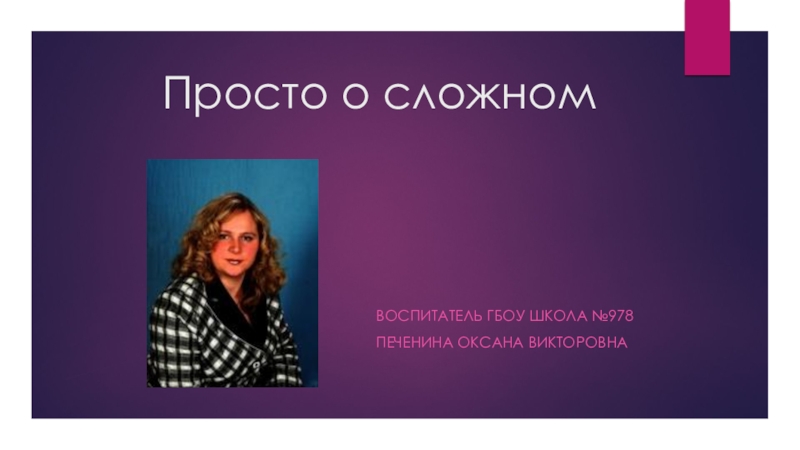 Просто о сложномВоспитатель ГБОУ Школа №978Печенина оксана Викторовна