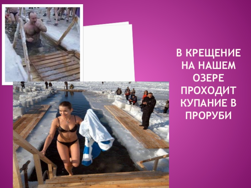 Слайд 14В Крещение на нашем озере проходит купание в проруби
