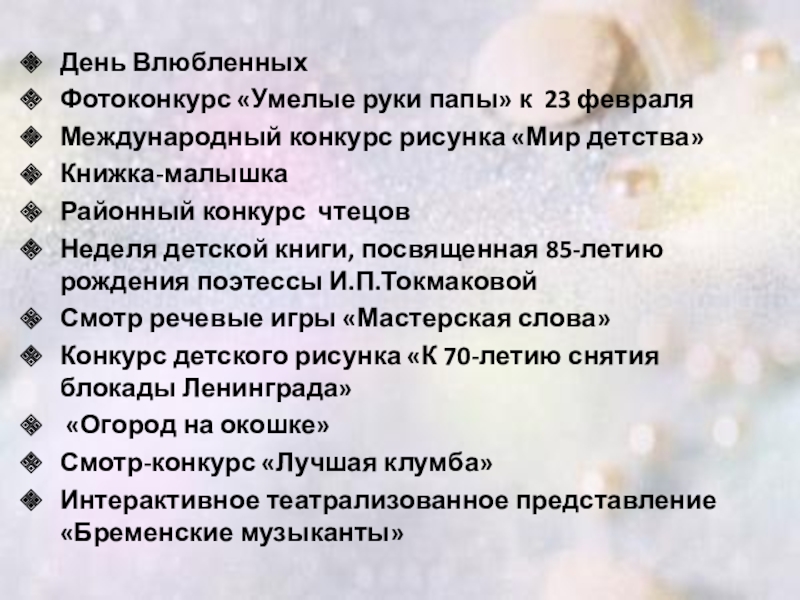 Это сайт презентаций, где можно хранить и обмениваться своими презентациями, докладами, проектами, шаблонами в формате PowerPoint с другими пользователями. Мы помогаем школьникам, студентам, учителям, преподавателям хранить и обмениваться учебными материалами.