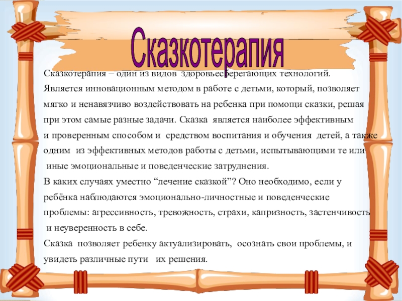 Сказкотерапия – один из видов здоровьесберегающих технологий.