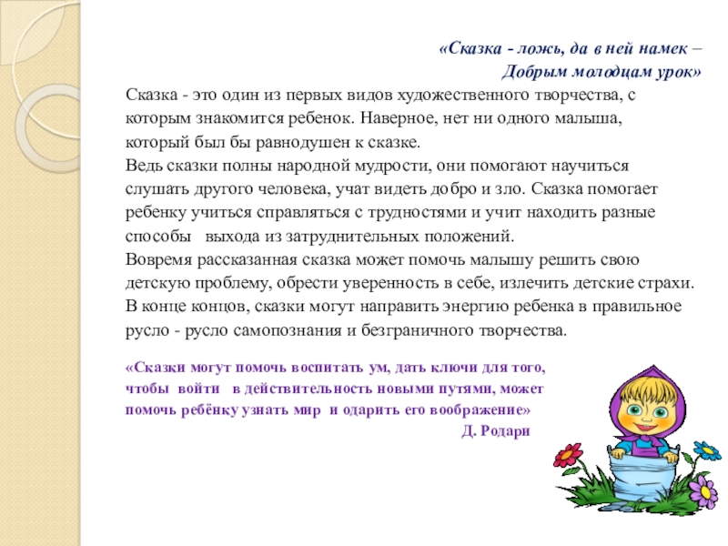 «Сказки могут помочь воспитать ум, дать ключи для того,