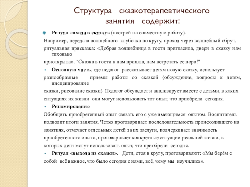 Ритуал «выхода из сказки». Дети, стоя в кругу, проговаривают: «Мы берём с