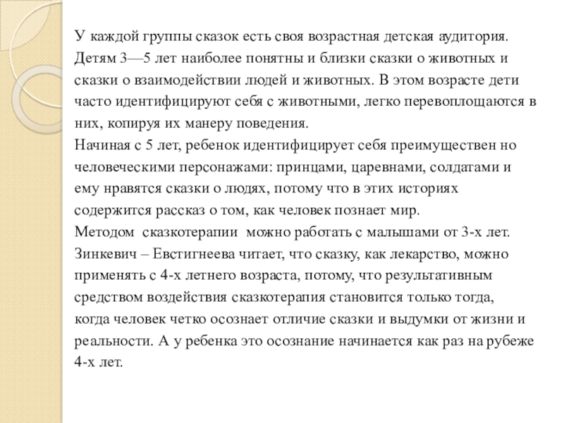 Слайд 10У каждой группы сказок есть своя возрастная детская аудитория.