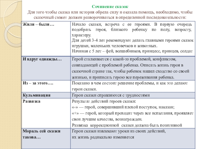 помощь, необходимо, чтобы сказочный сюжет должен разворачиваться в определенной последовательности:
