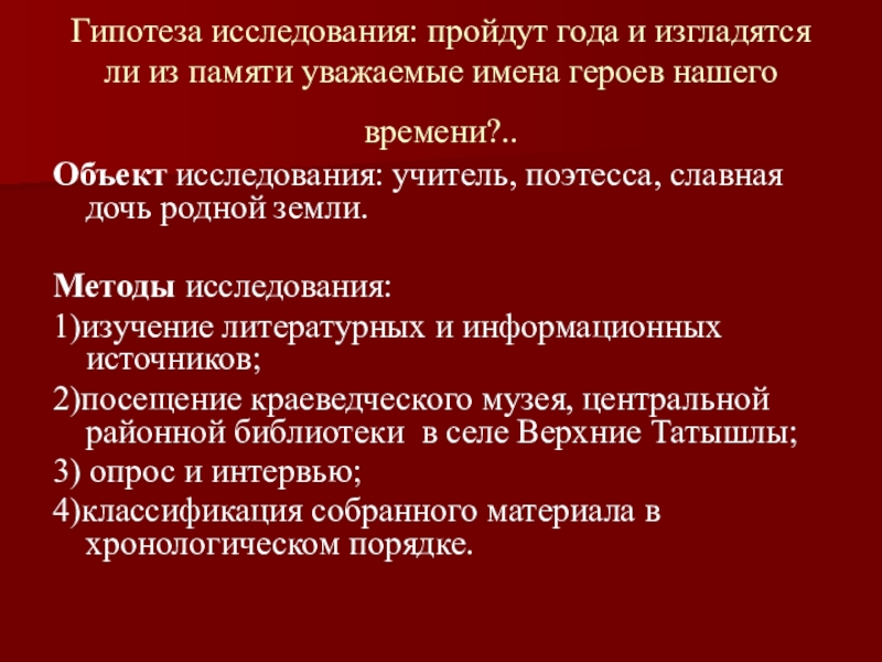 Объект исследования: учитель, поэтесса, славная дочь родной земли.