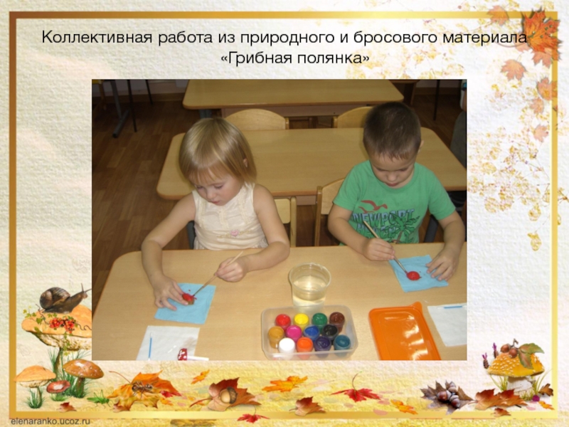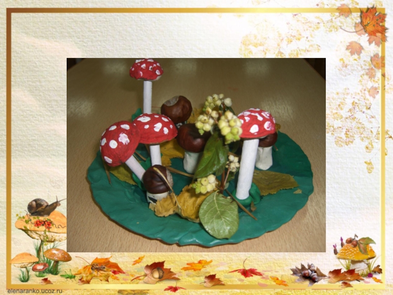 Слайд 20Коллективная работа из природного и бросового материала «Грибная полянка»
