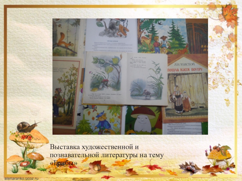 Слайд 9Выставка художественной и познавательной литературы на тему «Грибы»