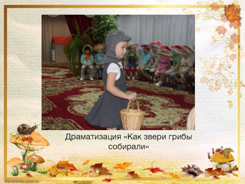 Слайд 29Драматизация «Как звери грибы собирали»