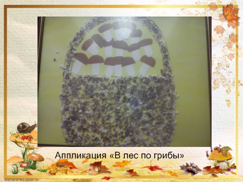 Слайд 19Аппликация «В лес по грибы»