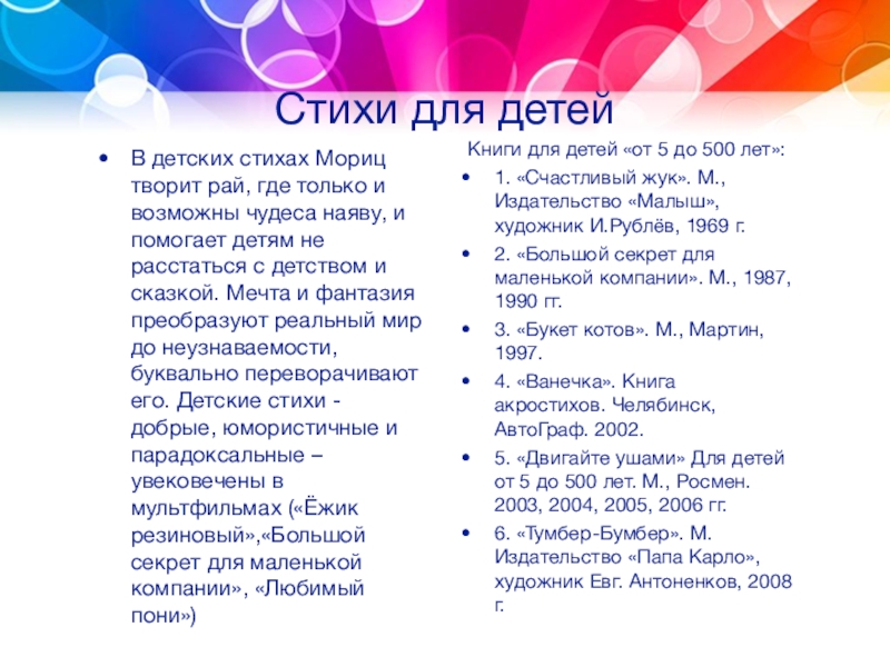 1. «Счастливый жук». М., Издательство «Малыш», художник И.Рублёв, 1969 г.