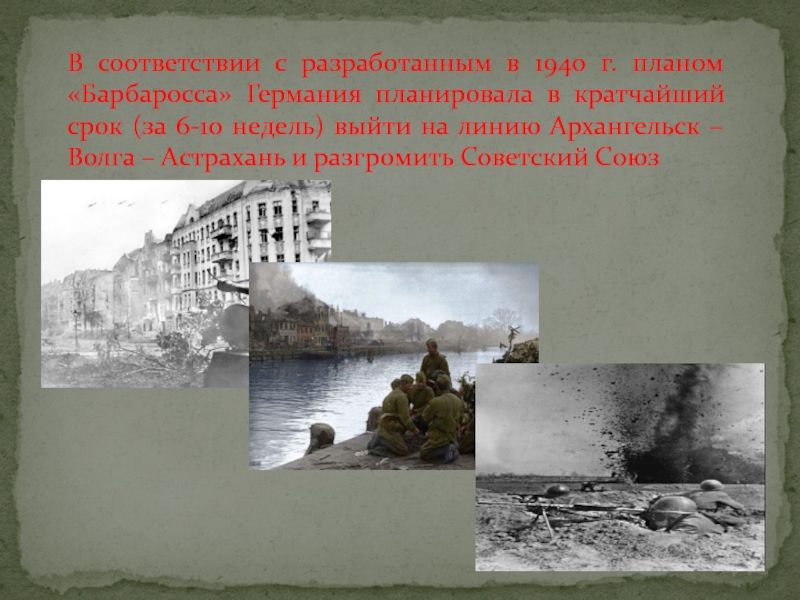 Слайд 5В соответствии с разработанным в 1940 г. планом «Барбаросса» Германия планировала