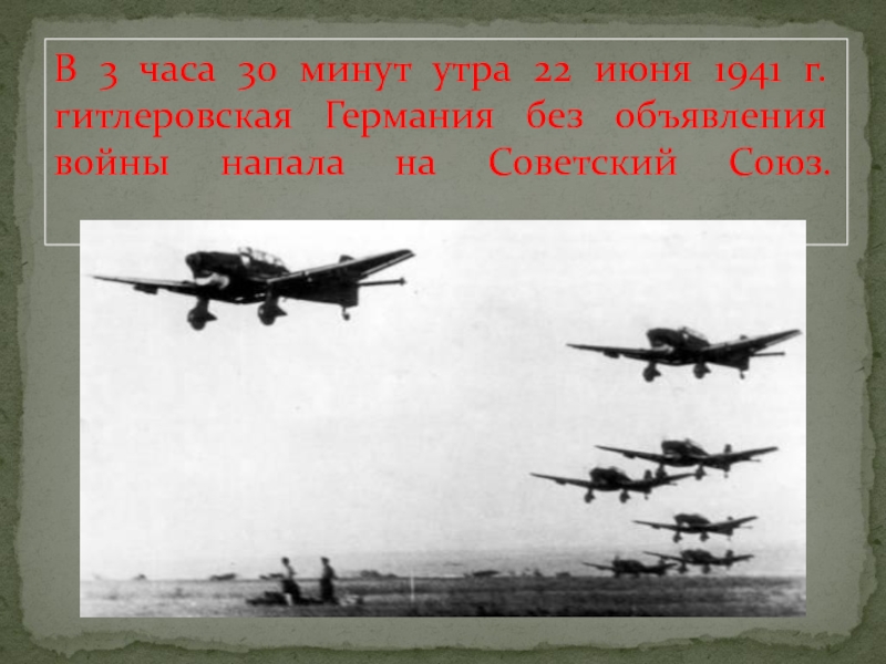 Слайд 2В 3 часа 30 минут утра 22 июня 1941 г. гитлеровская