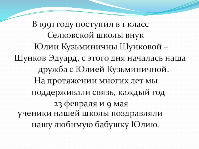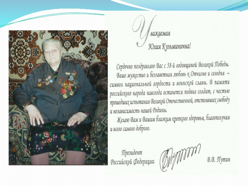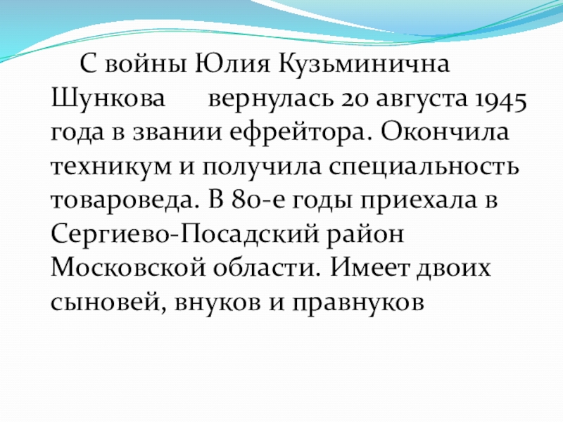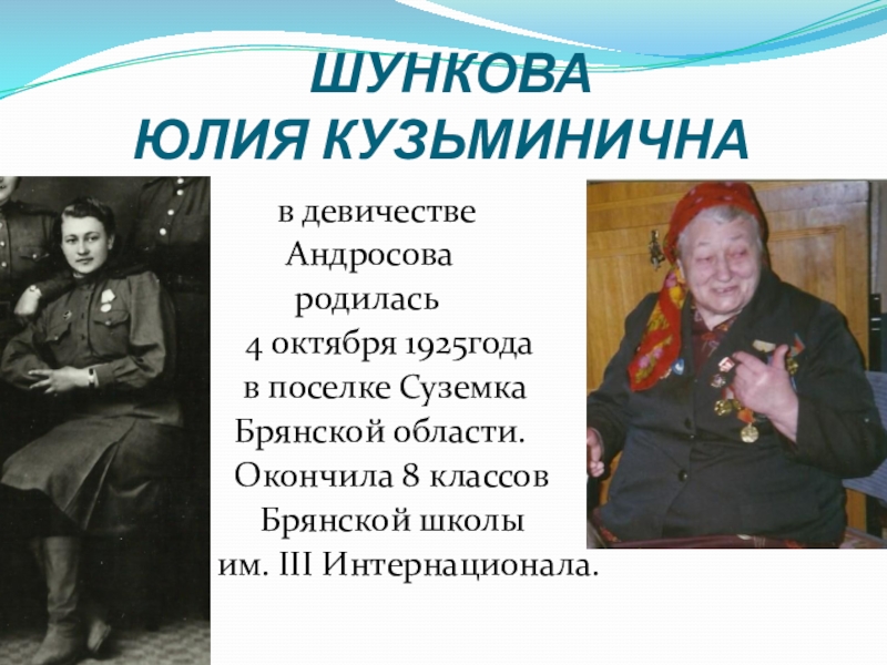 Слайд 13 С войны Юлия Кузьминична Шункова