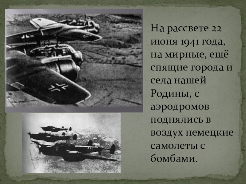 и села нашей Родины, с аэродромов поднялись в воздух немецкие самолеты с бомбами.