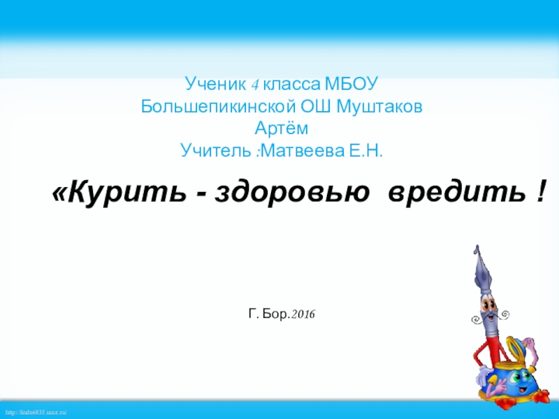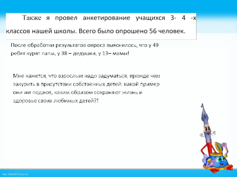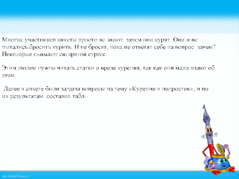 Это сайт презентаций, где можно хранить и обмениваться своими презентациями, докладами, проектами, шаблонами в формате PowerPoint с другими пользователями. Мы помогаем школьникам, студентам, учителям, преподавателям хранить и обмениваться учебными материалами.