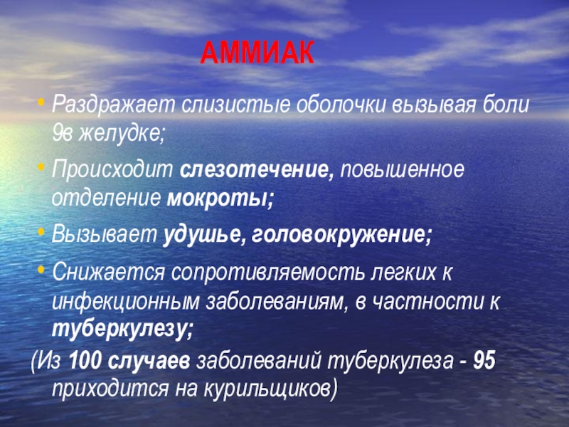 Раздражает слизистые оболочки вызывая боли в желудке;