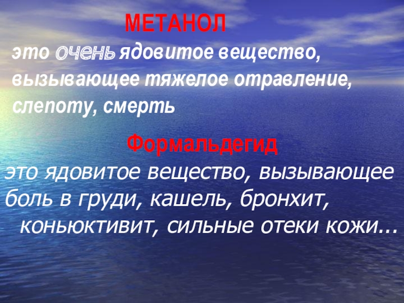 это очень ядовитое вещество, вызывающее тяжелое отравление, слепоту, смерть